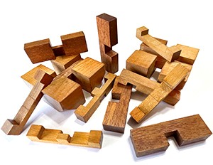 At dinner that evening, I casually mentioned to my dad that I’d been passing by his office and noticed the small wooden sculpture. He beamed with pride and said it was, in fact, a wooden puzzle that a friend had brought back from Japan. After dinner, he took it off the shelf and let me handle it (for the second time that day).